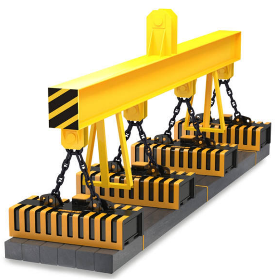 電磁吸盤(pán)吊具:通電產(chǎn)生磁力吸附鋼板,適配鋼材堆場(chǎng)、剪板機(jī)上料,斷電時(shí)需配備備用吊索防止墜落;