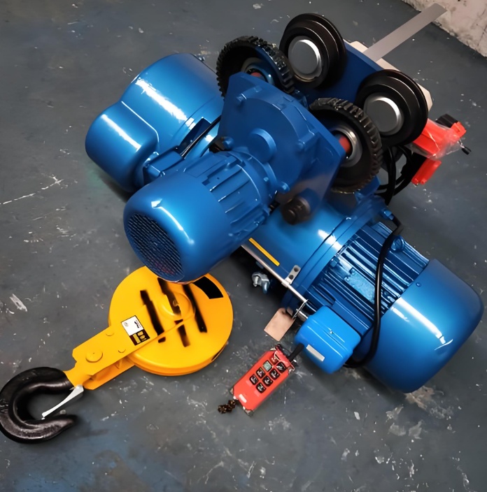 • 安全與輔助部件:配備上下行程保護(hù)斷火限位器,緊急情況下可切斷主電路,防止重物沖頂或墜底;下吊鉤為高強(qiáng)度鍛造件,可 360 度旋轉(zhuǎn),還配有防脫落安全舌片。此外還有聯(lián)軸器、軟纜電流引入器等部件,保障設(shè)備整體穩(wěn)定運(yùn)行。