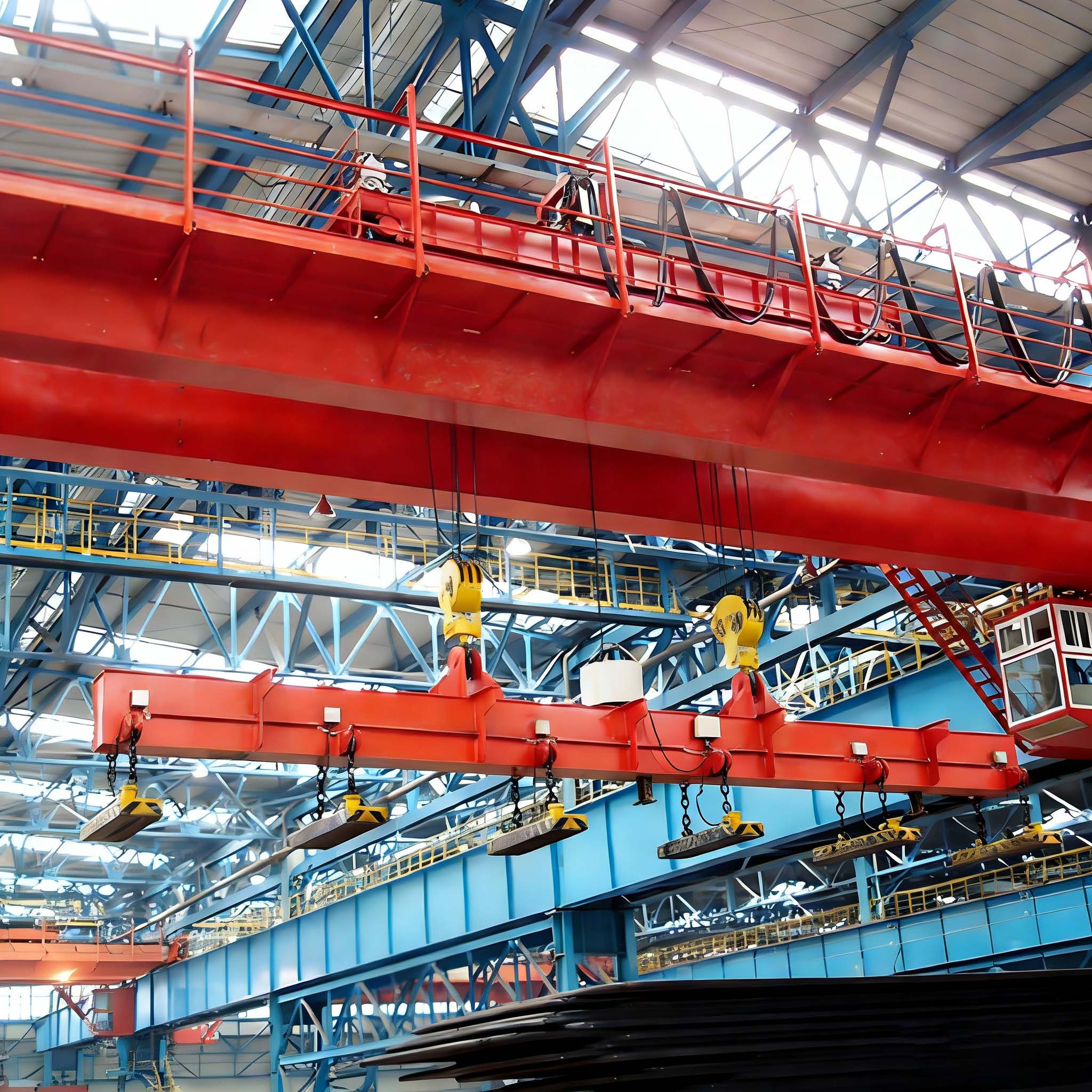 QC型電磁橋式起重機(jī)適用于需要大量搬運(yùn)黑色金屬材料的工業(yè)場景,常見于: